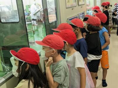 2年生は岸上かまぼこ工場を見学し、その後、川島ふれ合い公園に行きました。
