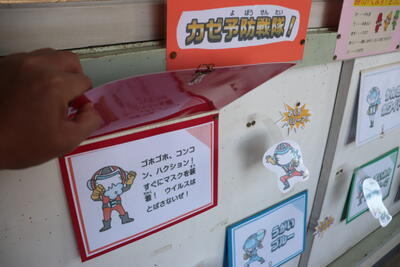 保健室前に、かぜ予防啓発のための壁面掲示があります。その名も「かぜ予防戦隊!フセグンジャ-」戦隊ものをモチーフに、マスク着用や手洗い・うがいの励行などを呼びかけるものです。この冬は、新型コロナだけでなく、インフルエンザの同時流行も懸念されます。改めて、基本的な対策の重要性を感じています。立体的にな掲示の工夫もありますので、ぜひ保健室前を通るときにはめくってみてください。