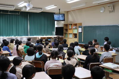 3月10日(金)、低・中・高学年ごとに避難訓練を実施しました。今回は、地震とその後の津波を想定しての訓練でした。宮崎県が作成した動画教材「災害から命を守る~津波編~」を視聴した後、地震発生の放送で机の下に避難しました。揺れが収まり津波警報が発令した想定で南校舎屋上に避難し、命を守る行動を確認しました。