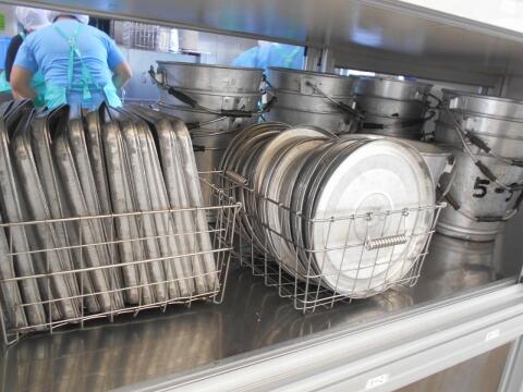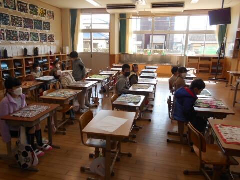 5時間目が終了したらすぐに手洗いをして当番さんは着替えをします。