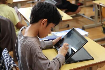 10月24日(火)、2年生が町たんけんのまとめをしていました。当日の写真を数枚選び、タブレット上で選んだ写真に説明を書き加えていました。2年生も端末の扱いに慣れてきて、上手に操作していました。以前であれば、模造紙などに写真を貼ったりし、そこに手書きで説明を書き込んでいたものが、ICTの活用で効率よく作業を進めることができています。