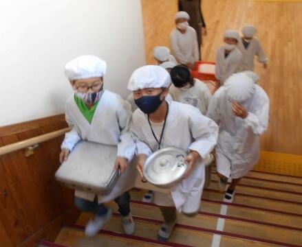 安心・安全な給食のために、毎日お当番さんが配膳をしてくれています。