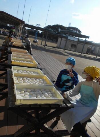 保護者の方にできたおもちを手際よく数え、袋詰めしていただきました。