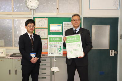 2月2日(木)、ネッツトヨタヒムカ(株)日向店さんより、職員の私的なご縁がきっかけで「足踏み式消毒スタンド」が寄贈されました。