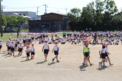 5月24日(水)、全校で新体力テストを実施しました。「握力」「シャトルラン」「50m走」以外の5種目を1~6年の縦割り班で回る形式で行いました。6年生がリーダーシップを発揮し、低学年を誘導したり、記録したりしながら計測していきました。運動場では「ソフトボール投げ」、体育館では「反復横跳び」を行いました。1年生にとっては、はじめての取組ですが、2年生以上は昨年度の自分の記録を上回ることができたかな?
