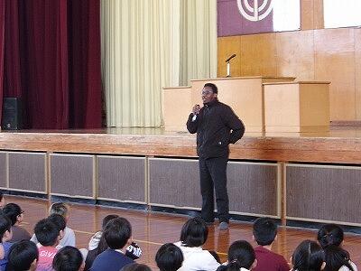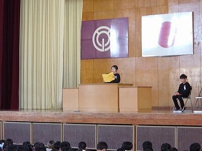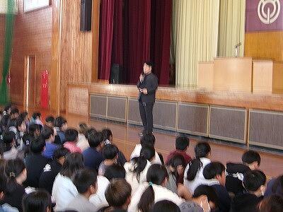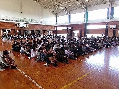 修了式の後には、生徒指導主事の吉田先生から春休みの安全な過ごし方についての話がありました。また、ALTでお世話になったマイケル先生からお別れにあいさつをいただきました。
