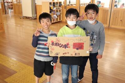 12月7日(木)、2年生が「おもちゃまつり」の準備を行っていました。これは、国語「おもちゃのつくり方をせつめいしよう」の学習の最終ゴールです。1年生を招いて、おもちゃの作り方を説明するとともに、1年生に実際におもちゃで遊んでもらう計画です。1年生に分かりやすく説明して楽しんでもらうという明確な目的があるので、やる気に満ちあふれる2年生です。