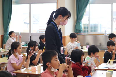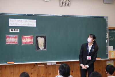6月12日(月)、教育実習生の髙橋先生が4年1組「学活」で研究授業を行いました。題材は「正しい歯のみがき方を知ろう」です。どのような教材を使えば子どもたちに伝わるか、日常化につながる事後指導はどうすればよいかなど…これまで教材研究や準備してきた内容を、授業として表現してくれました。