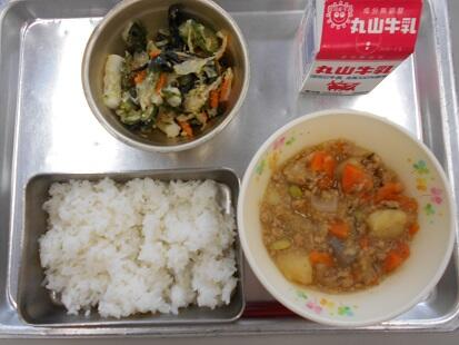 ごはん 牛乳 めひかりのかばやき コロコロきゅうりづけ 八杯汁