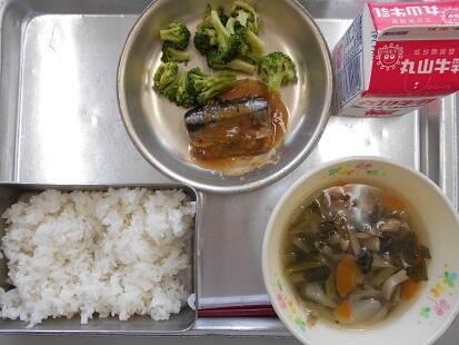 今日の給食では、ゆず風味の秋刀魚の味噌煮でした。