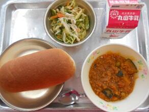 今日のメニューは、かぼちゃがたっぷりのミートソース煮でした。