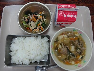 今日は、うれしい中華メニューでした。中華煮もさることながら、野菜をラー油で和えるという技に感心しました。いつもの野菜がグッと引き立ちます。給食とはいいながら、クオリティの高いのが自慢です。中華丼としていただいても100点満点です。感動の給食をありがとうございました。