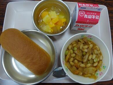 今日は沖縄県の郷土料理でした。マーミナーは「もやし」で、チャンプルーは「炒め物」のこと。ゴーヤチャンプルーなど、沖縄では炒め物のバリエーションが豊富です。ニンジンシリシリなんていうものもあります。もやしがたっぷりと入っていて、もやしらしからぬボリュームがありました。「もずく」も沖縄の特産物です。チャンプルーもスープも野菜がたっぷり入っていて、体が大喜びでした。(苦手な子は大変?)