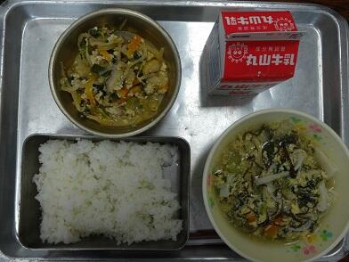 今日は、うれしい中華メニューでした。中華煮もさることながら、野菜をラー油で和えるという技に感心しました。いつもの野菜がグッと引き立ちます。給食とはいいながら、クオリティの高いのが自慢です。中華丼としていただいても100点満点です。感動の給食をありがとうございました。
