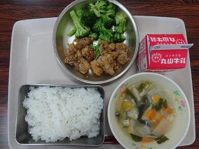今日は、グッと和風の給食でした。白身魚の竜田揚げは、中がフワッと外はカリッと仕上げられプロの仕事と感じました。ご飯によく合うおかずです。すまし汁には、旬のタケノコが入っていて季節感も味わうことができました。給食は、単なる食の提供ではなく食をとおした文化を学ぶ場でもあります。今日もごちそうさまでした。