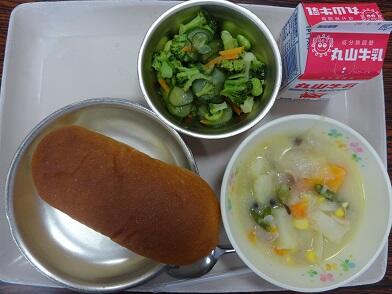 今日はパンの日でした。パンと相性抜群のチーズ煮は、子どもたちもどんどんおかわりをしていました。サラダも好評のようでした。ブロッコリーがごろごろと入っていて、野菜好きにはたまりません。ドレッシングのさわやかさも食欲をそそります。