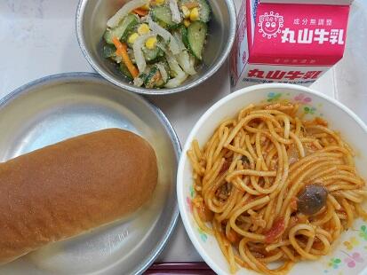今日は、東小学校の運動会予行練習。その後食べた給食は子どもたちも大好きスパゲティでした。ニンニクのきいたしょうゆベースのスパゲティは、バターを隠し味に入れてコクを出しました。もう、香りも味も美味しくいただきました。