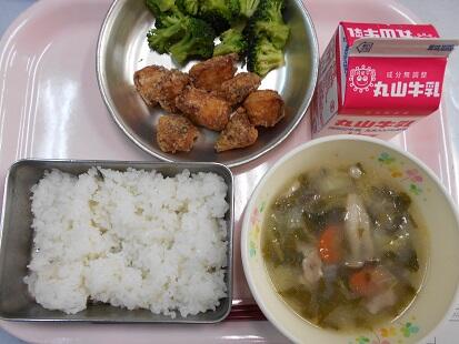 いつものことながら、給食のからあげ!カリッと揚がっていてとっても美味しんですよ( *´艸`)子ども達も大喜びでした。