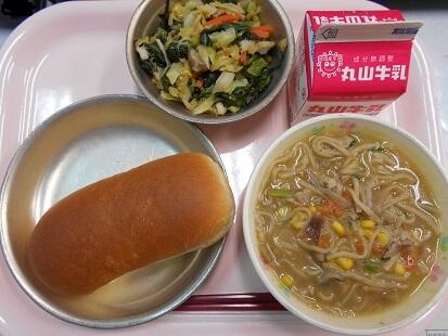 今日は、ラーメン。子ども達が食べるときは汁なしラーメン。それでも、子ども達に大人気のメニューなんです。