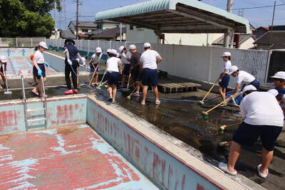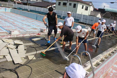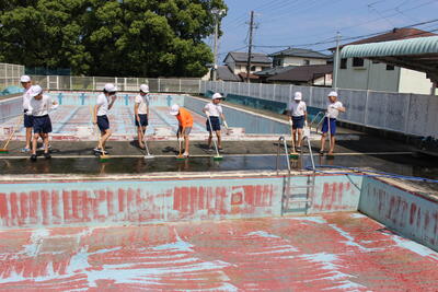 先週の金曜日、6年生によるプール掃除がありました。