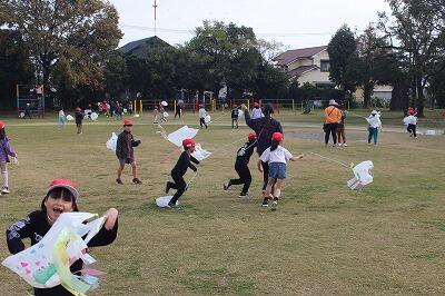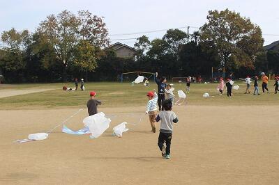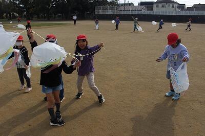 先週金曜日、1年生がたこ揚げをしていました。