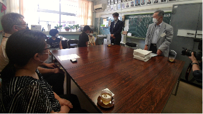7月8日(木)、野口遵顕彰会の方々が来校され、本校4年生への副読本の贈呈をしてくださいました。4年生を代表して、髙橋星梨奈さん、才原結仁さん、猪須琴葉さんが副読本を受け取りました。才原結仁さんは、代表のお礼の言葉の中で、この延岡に旭化成という大きな会社をつくった野口遵への感謝の気持ちと尊敬の気持ちをあらわしていました。