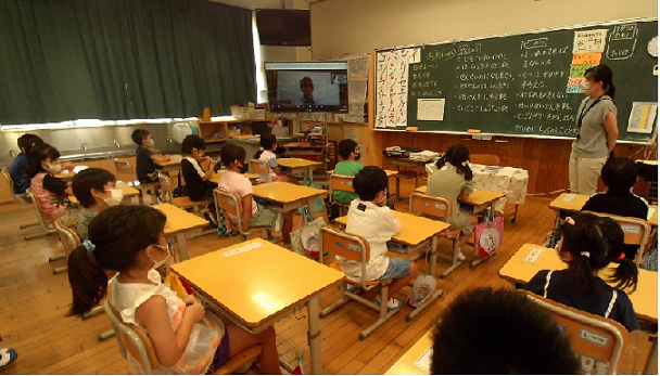 2校時に始業式と清掃を行いました。代表児童の作文発表と校長先生の話、その後、健康と生活について担当教員から話をしました。今回は校内をZoomでつなぎ、各教室の大型テレビを視聴しながら児童は始業式に参加しました。今日からの2学期に、意欲と期待の気持ちをもった子どもたちと先生たちでした。