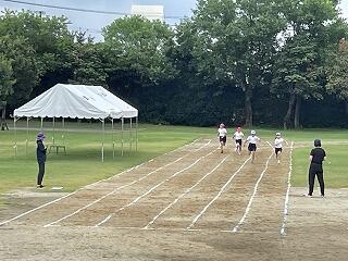 1年生はリレーと徒走の練習です。ラインを越さずにまっすぐ走ることができるようになってきました。