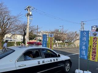 朝の登校時に本校の交通少年団の2名が交通安全の呼びかけを行ってくれました。