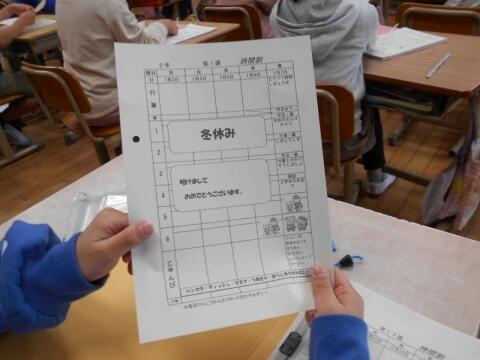 「冬休みのしおり」できまりを再確認するクラスが多かったです。