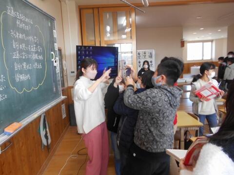 5年道徳。自分の授業を録画し、授業力UPを図る取り組みを行っていました。