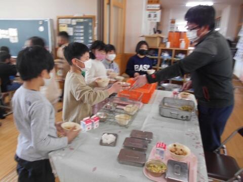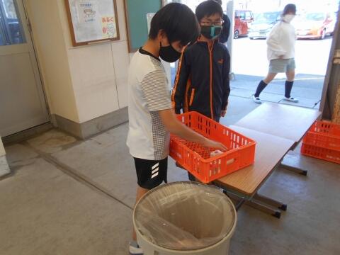 昼休みに教頭先生のお手伝いを進んで行う児童。