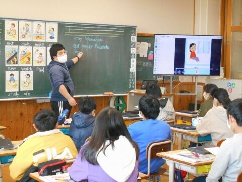 ICTが得意(!?)な教員が2年生のタブレットを使っての「音楽」をしていました。