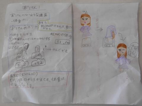 3年生の児童が自分で実験してみて、紙にまとめたものを見せてくれました。