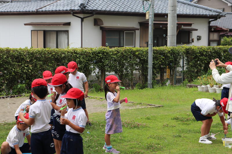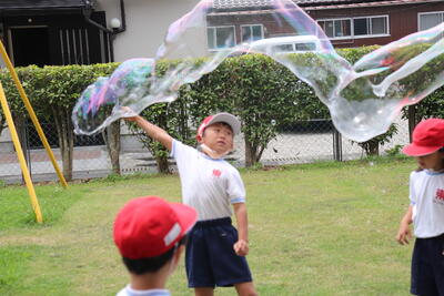 1年生が12日(火)にシャボン玉を飛ばしていました。
