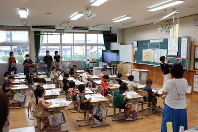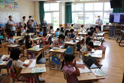 子どもたちは、久しぶり(1年生にとっては、小学校はじめて)の参観日で、張り切る姿が見られました。学級懇談会では、1学期の様子、夏休みの過ごし方、PTA一人一決定等について、お話させていただきました。3年生以上では、タブレット(一人一台端末)の持ち帰りについて説明があり、保護者の皆さんにも実際に体験していただく学級もありました。