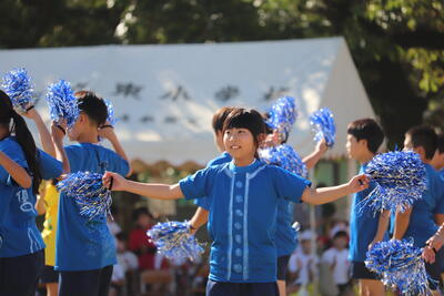 4年生の表現は、「東っ子ミックスチャレンジ」、人気アニメ主題歌の軽快なリズムに乗せ、楽しく踊ってくれました。手元のボンボン同様、キラキラ光る笑顔が印象的でした。