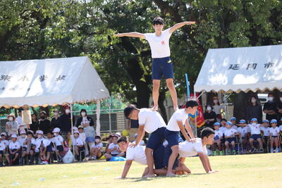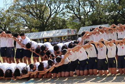 曲に合わせての組体操だったので、技を完成させるタイミングが難しかったと思います。子どもたちが痛みや重さに耐え表情を歪ませながらも、指揮者の合図に視線を送っているのが印象的でした。6年生の皆さん、最高の贈り物をありがとう!