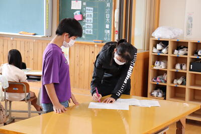 先日より九州保健福祉大学の学生さんが、無償ボランティアで学習支援に入ってくれています。関わりは多様で、課題解決のための支援、家庭科の裁縫の補助、練習問題等の丸付けなど、指導者及び児童のニーズに応じたサポートを行ってもらえます。年齢が近いこともあり、子どもたちからも大人気です。