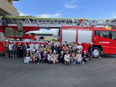 3年生の行き先は、延岡市消防本部と西階公園でした。延岡市消防本部では、消防士さんに消防署の業務内容を教えていただきました。消防車や救急車をこんなに間近で見る機会はめったにないので、みな興味津々でした。その後は西階公園に移動し、お弁当を食べたり、思いっきり遊んだりしました。