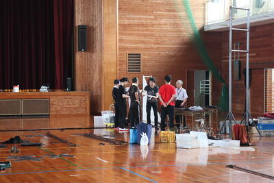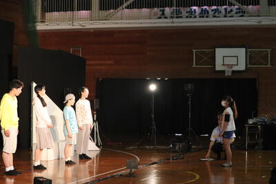 6月19日(月)は、鑑賞教室が行われます。今年度は、「劇団 野ばら」さんの『あした あさって しあさって』を上演予定です。6月18日(日)の午後より、会場となる体育館では上演の準備が着々と進んでいます。「劇団 野ばら」さんよりメッセージをいただきました。