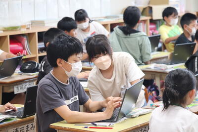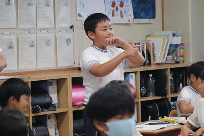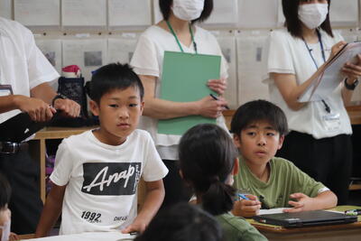 授業の途中、断水に係る緊急放送が入るというハプニングもありましたが、4の1の子どもたちはいつもどおりの取組でした。指導教諭である東坂先生は、授業後も参観者からの質疑に応答し、充実した研修になったようです。