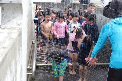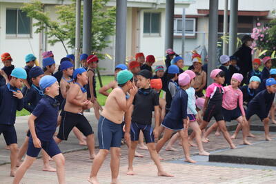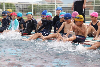 6月26日(月)、6・1・2年生のプール開きが行われました。子どもたちは、この日を楽しみにしていたようで、気持ちよさそうに水慣れしていました。(2年生は、プールに入る前と後の写真です。ごめんなさい)