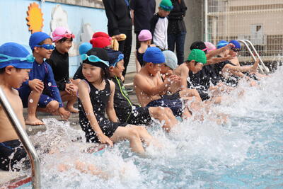 これから約1か月間の水泳学習がはじまります。きまりを守り、安全で楽しい水泳学習になることを祈ります。暑い中、見守りに来てくださった保護者の皆さん、ありがとうございました。今後も、ご協力よろしくお願いします。