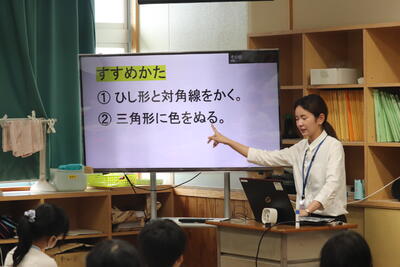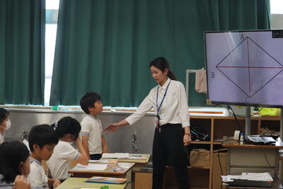 6月30日(金)、4年2組で初期研修の研究授業が行われました。算数「垂直・平行と四角形」の学習でした。ひし形の定義(性質)を使って解決して内容でした。初期研修で学んでいる村田教諭に応えようと、子どもたちも意欲的に活動する姿が見られました。共に成長していく姿を、授業参観した職員も見届けることができました。
