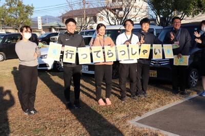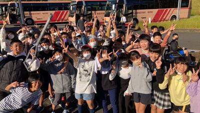 11月14日(火)、5年生がむかばき青少年自然の家に、1泊2日の集団宿泊学習に出発しました。空には青空が広がっています。雄大な自然の中での、有意義な学びを期待しています。5年生の皆さん、いってらっしゃい