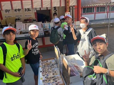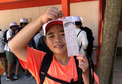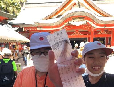 1・2組は先に青島に渡り、青島神社を散策しました。みんなでお参りをした後は、おみくじを引く子もいました。さて運勢はいかに?大吉を引き当て、喜ぶ姿もありました。