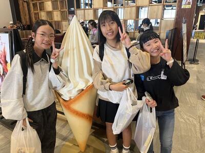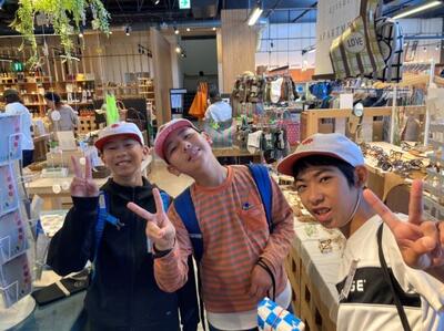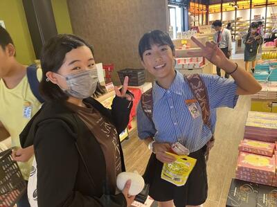 1・2組が青島散策をしている間、3・4組は買い物です。最初の買い物ポイントとあって、目を輝かせています。「これ、家族が喜びそう」「チームの仲間に買って帰ろう