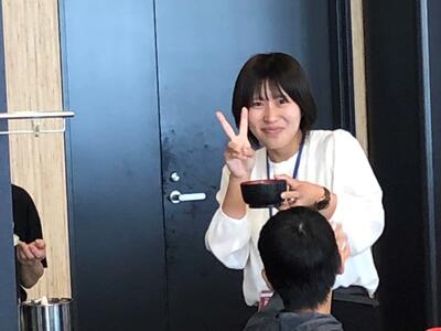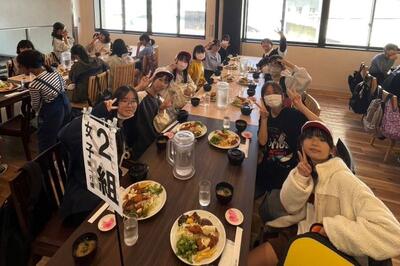 お昼が近づきお腹もすいてきました。「AOSHIMAYA」で昼食です。おかずは、大きなエビフライにチキン南蛮、ハンバーグです。ご飯を5杯もおかわりした子もいたようです。これでエネルギーも補充され、午後からばっちりバッチリですね引率の職員もしっかりとおかわりし、今後の引率に備えています。