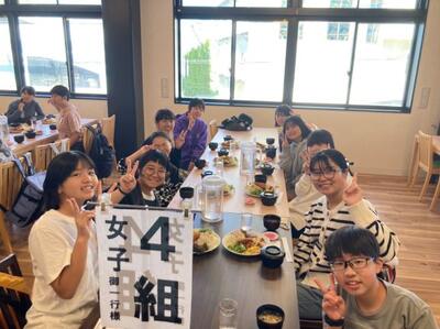 まだ寝ぼけ眼だった子も、朝食でようやく目が覚めた(笑)ようです。朝からおかわりする姿も見られています。この後、部屋の片付けを行い、午前中「追跡ハイキング」を行います。
